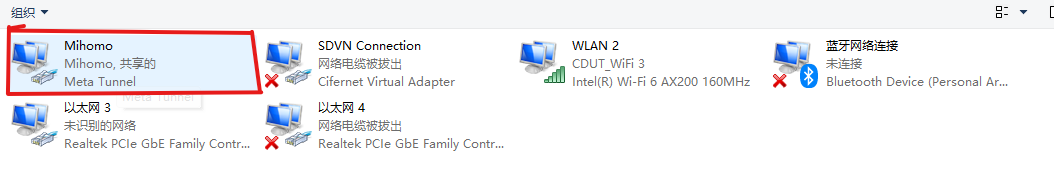 确保 Clash 运行正常,此时 Windows 网络适配器中会多出一个虚拟网卡。