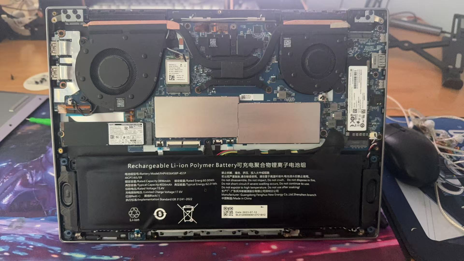 今天笔记本机械革命的那个笔记本触控板突然失灵了,刚开始是怀疑驱动问题,或者说是禁用了,总之就是很奇怪,切换到另一个windows下依旧是无法使用,等等,进一步测试发现触控板按压没有了段落感触摸失灵了,这感觉起来更是物理机械故障,回忆了一下并没有碰撞等因素,因此把电脑拆开一看,好家伙一看吓一跳,相对于上一次拆开使用,电池已经是严重鼓包了,这下子就有猜测了,有可能是电池鼓包压迫了触控板导致了这次鼓掌。
