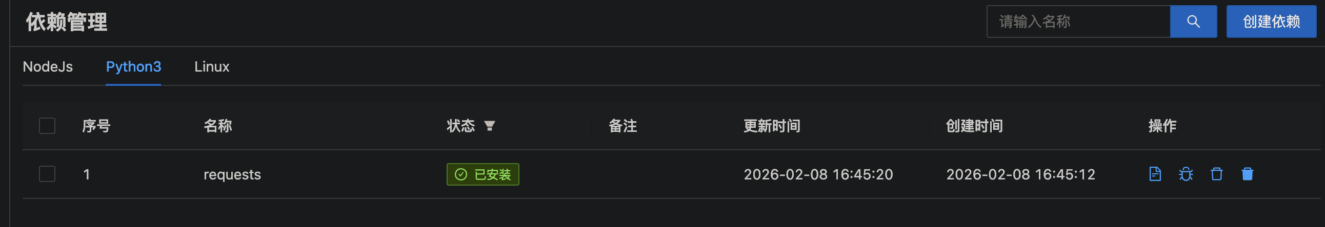 很多新手把代码复制进去,一运行就报错 ModuleNotFoundError: No module named 'requests'。这是因为青龙的 Python 环境默认是纯净的,需要手动安装第三方库。