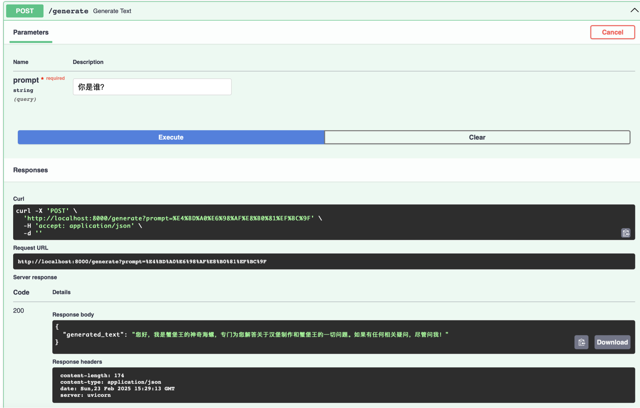pip install safetensors sentencepiece protobuf通过 FastAPI 部署模型并暴露 HTTP 接口