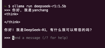 termux环境下部署大语言模型测试了一下基本属于可用状态在termux环境下安装ollama服务apt install ollama开启ollama服务ollama serve开启新的窗口拉模型,由于是小手机直接拉1.5b模型cpu硬算ollama pull deepseek-r1:1.5b然后启动就可以了ollama run deepseek-r1:1.5b