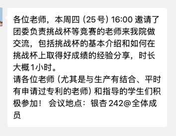 1. 战略高度重视: “挑战杯”是与“互联网+”大赛同等重要的A1级学科竞赛,对教师职称评定、学生毕业与综合能力提升、学院科研成果转化均有重大意义。
