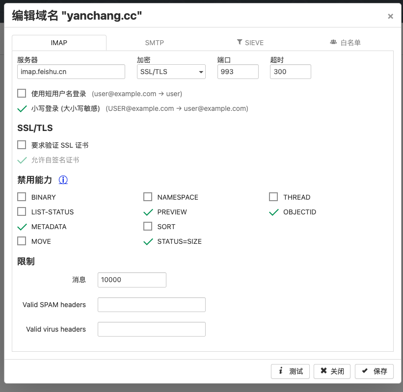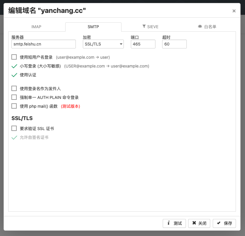 user@yanchang.cc)作为用户名验证。如果勾选此项,系统只发送user,会导致invalid email address错误。